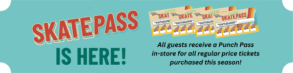EXTENDED!, Skate Pass, All Day! Full Price Admissions receive a Skate Pass punch! After 6 punches, receive a free admission! Show your full price admission ticket purchase to receive a valid punch at our rental desk!