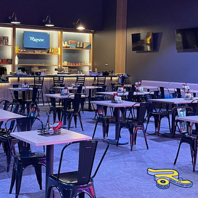 Features: 6200sqft rink, versatile restaurant style seating for ~140, full liquor bar & catering menu. Stage with A/V, plug-and-play audio, and skate equipment as needed!